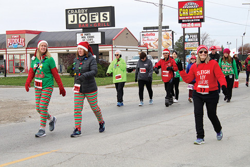 At the signal, around 600 individuals - all dressed up in Christmas gear - dashed off on Talbot Street, beginning at event partner- Ken Knapp Ford, to participate in the event. The route extended into downtown Essex Centre.