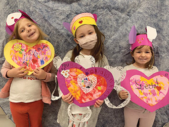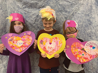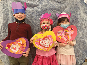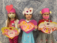 Also, as part of Valentine’s Day, the students made a crown to wear, decorating them with hearts they made by learning about symmetry.